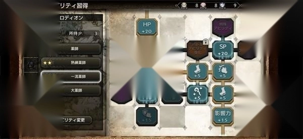 每个英雄有2个初始技能,然后每升一级能获得1个技能点(JP),技能点可以学习技能或提升属性