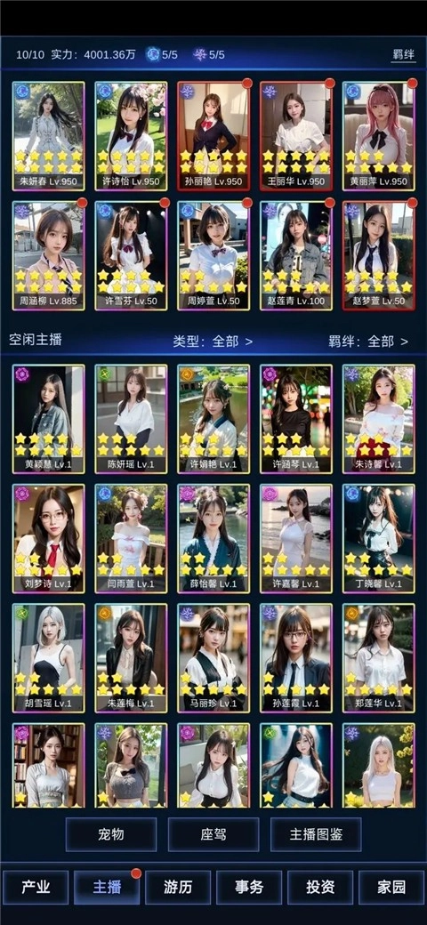 游戏中可供玩家招募与培养的美女主播多达上百位,每位都独具特色,她们在外形、性格、才艺以及技能等方面各有不同,能够满足玩家多样化的喜好需求。