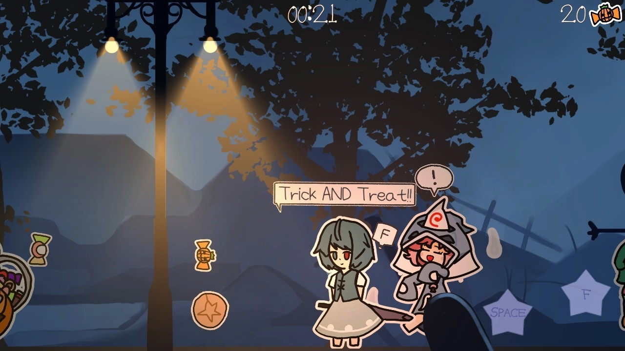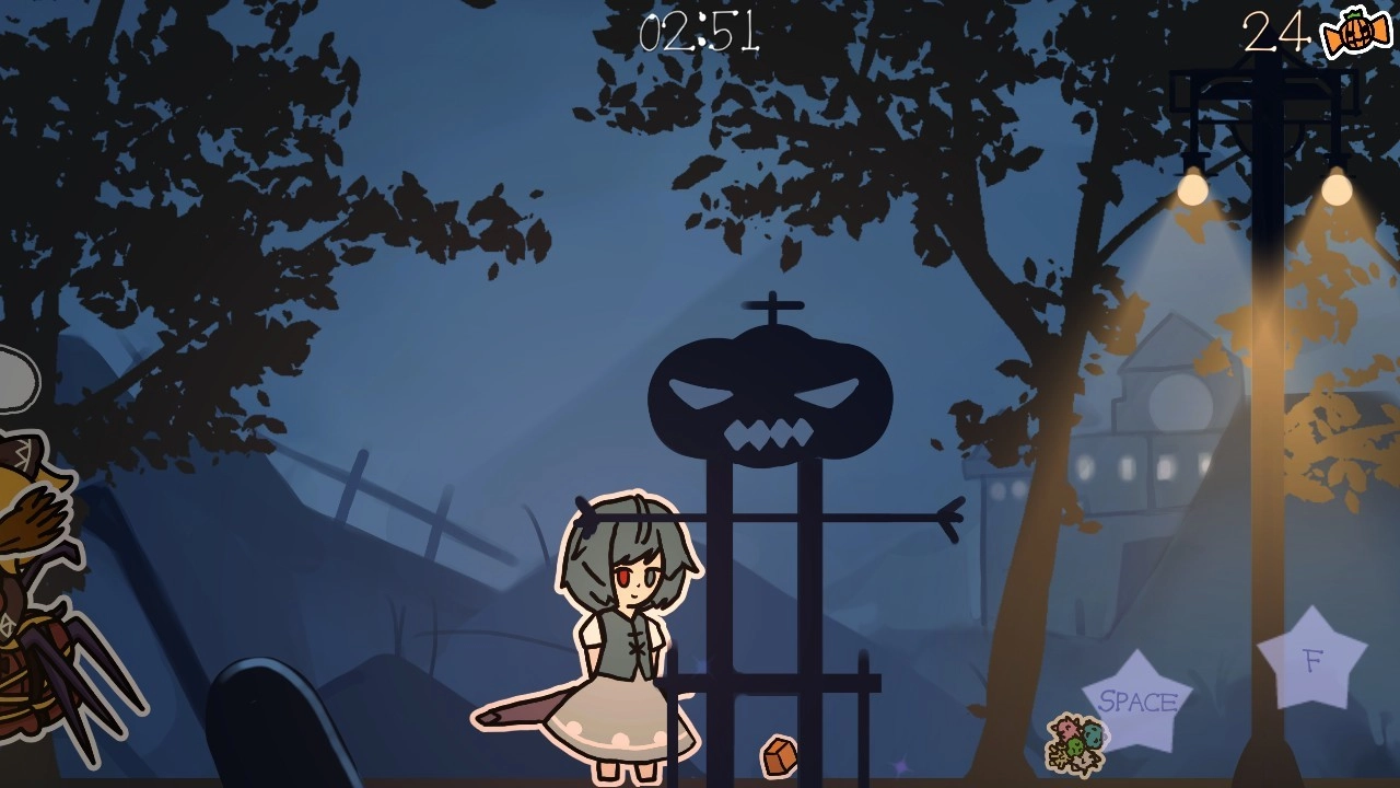 3.点击右侧的space键进行跳跃和吓唬人,成功的话就能获得糖果。