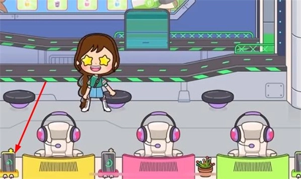 3.抵达酒店一楼后,打开保安身后的柜子,里面放着一个可爱的粉色猫咪行李箱。将箱内物品取出,换上我们自己的东西,这可是出门旅游必不可少的行李箱呢。