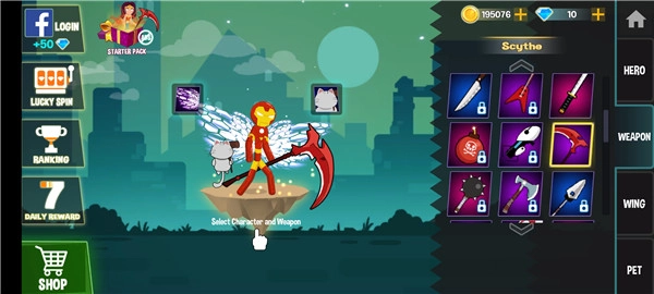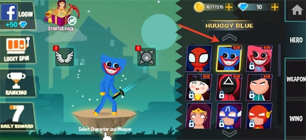 2、挑选你的火柴人角色,钢铁侠、鸣人、路飞等角色一应俱全;
