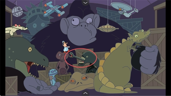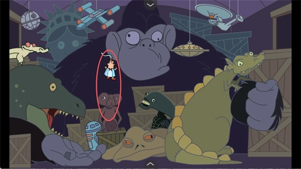 当梦游先生经由猩猩的耳朵移动到左侧时,迅速点击那个棕色的头部,就能将梦游先生托举下来。