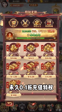 4、永久0.1折充值特权,让你玩到爽