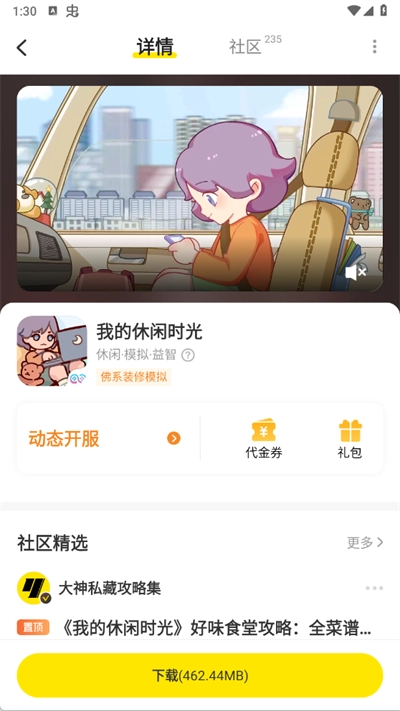 这里以我的休闲时光为例,点击进入游戏详情界面