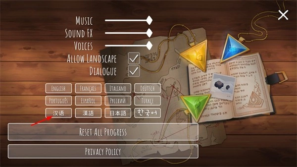 2、然后选择汉语就可以将游戏设置中文版了。