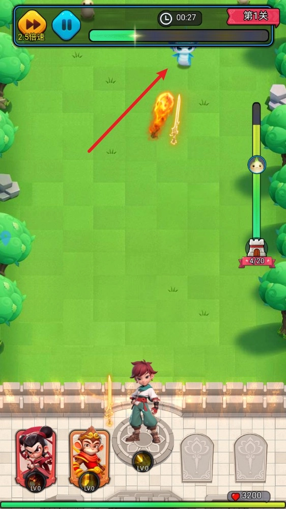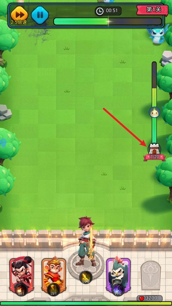 3、右侧可以看到关卡的进度,以及BOSS到达的时机。