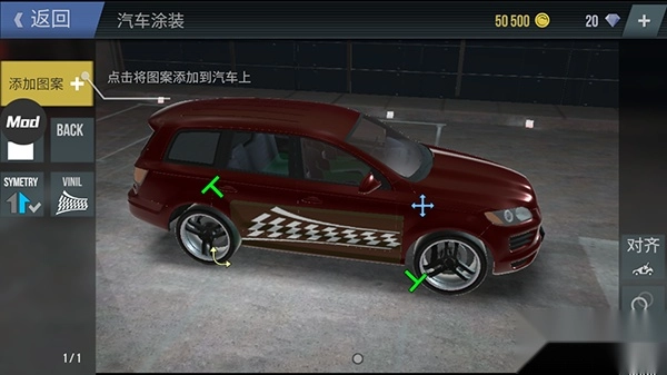 3、进入汽车涂装界面,可根据自己的喜好进行改装,