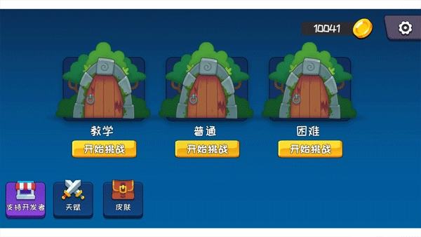 皮肤与强化系统:可以解锁头部和身体部位的皮肤,其中部分皮肤还附带防御属性加成;同时能够消耗金币来强化基础伤害和天赋能力,以此提升初始阶段的战斗能力。