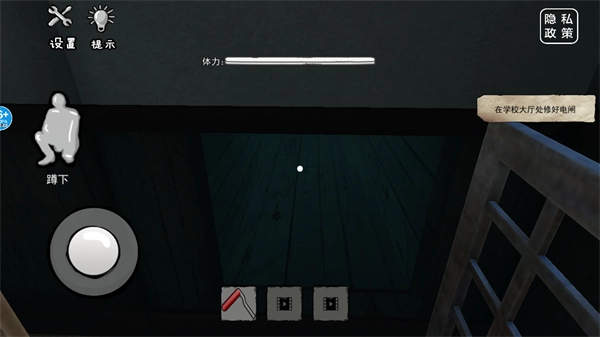 4、在讲桌位置看到电闸手柄道具后,按照指引点击右侧手掌按钮拿取道具,将其收集至背包,该道具可用于后续的机关相关操作。