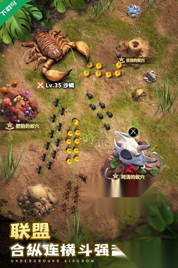 2、率领蚂蚁军团在广阔区域战斗,为争夺领地与其他生物展开激烈交锋;