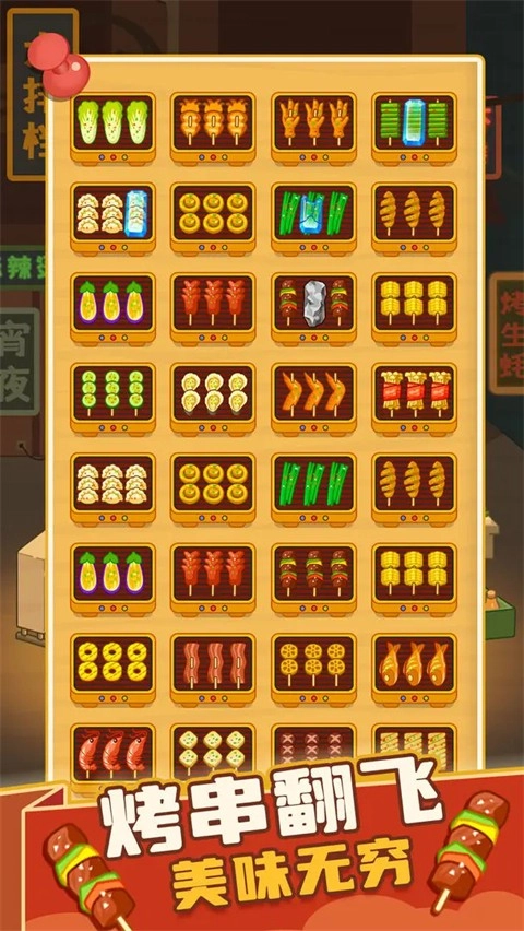疯狂烧烤摊版是一款让人放松解压的休闲益智游戏,操作方式简单易懂,只需用手指轻轻拖动烤串,把三根相同种类的烤串放在一起就能消除,新手也能轻松上手。游戏里有各种各样的烧烤食材,能满足不同玩家对视觉效果和玩法的需求。另外还有多种实用的神奇道具,可以帮助玩家快速清理盘子里的障碍,顺利通过关卡。而且每周都会更新新的关卡内容,难度会随着游戏进程慢慢增加,不断给玩家带来新的挑战。