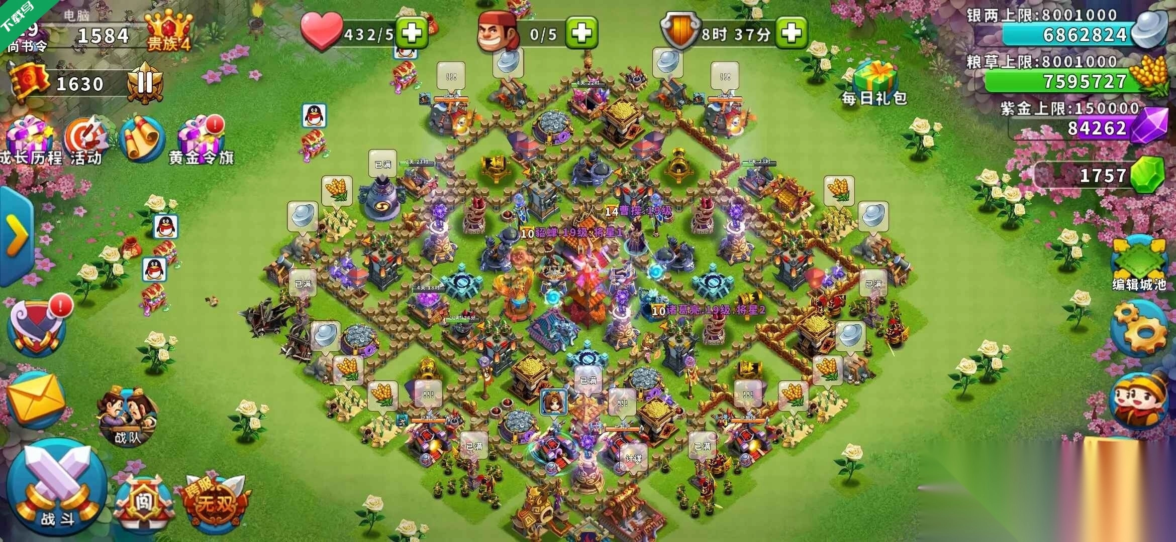 玩家可通过对战和征战天下玩法积累战功,这些战功会自动推动太守府等级提升;等级提升后,不仅能解锁计谋策略与顶级防御建筑雷峰塔,还可增加出兵上限以及减时次数。