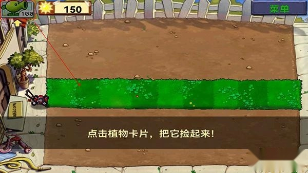 2、拾取植物卡片可以种植到草坪上,这个植物为豌豆射手;