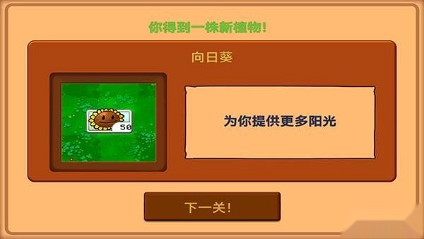 5、闯过一关后,会解锁相应的奖励,例如这个向日葵卡;