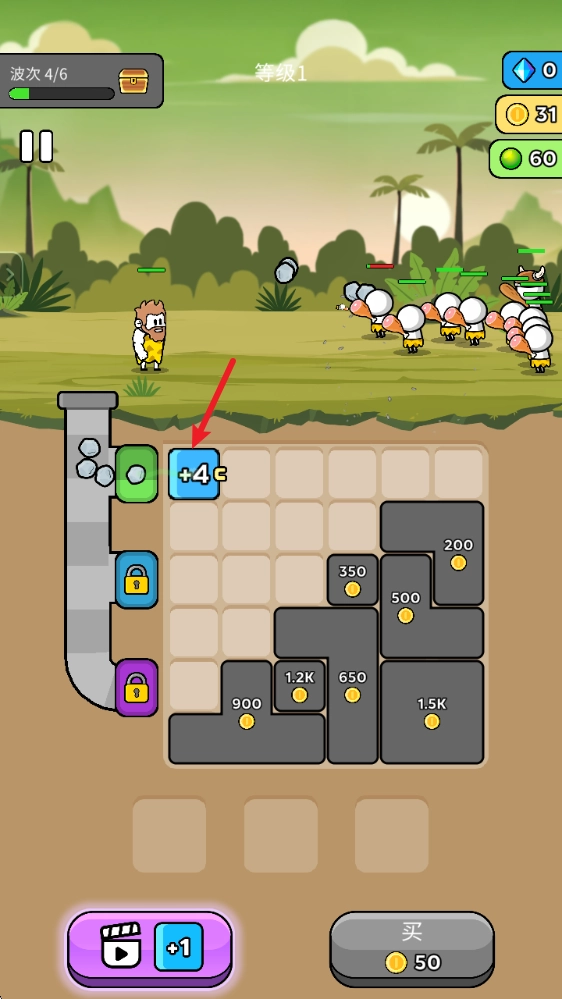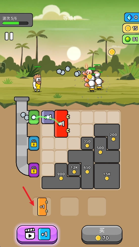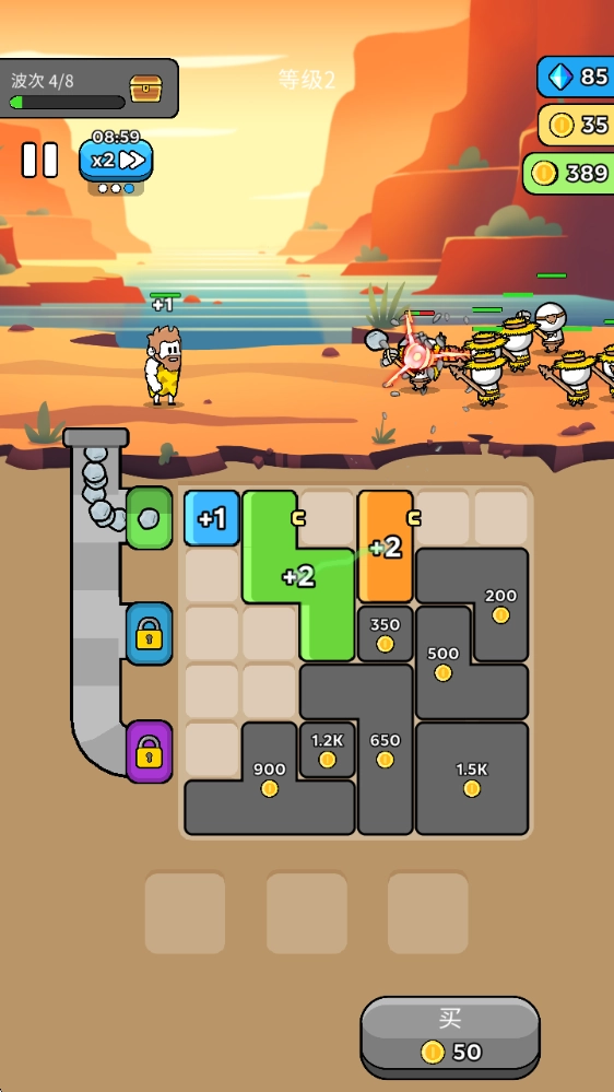 击败敌人后能获取金币,用这些金币可以购买更多方块,进而提升武器生产的效率。