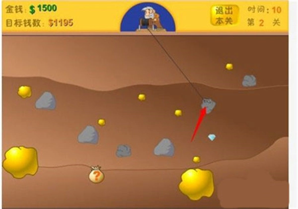 2. 游戏的核心目标是借助抓钩获取地下的金块、钻石等贵重物品,并且要在限定时间内凑够关卡规定的金额。