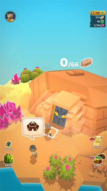 1、进入游戏后优先查看【砍木头】任务,操控角色在岛上寻找树木进行砍伐收集资源。