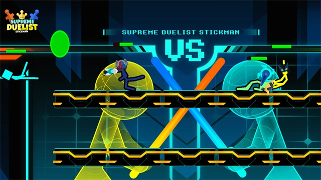 2、操控蓝色火柴人发起攻击,当攻击命中黄色火柴人时会触发音符特效,这时可以衔接后续的进攻动作来扩大对战优势。