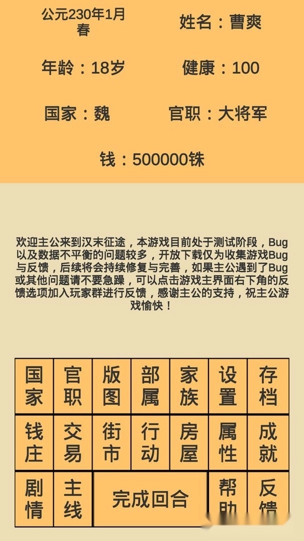 东汉末年,天下大乱,群雄并起,逐鹿中原,战火纷飞,最终三分天下。在这个波澜壮阔的时代,你可以选择入朝辅佐君主,运筹帷幄;也可以投身军旅,浴血奋战,建立不朽功勋;还能从商经营,积累财富,成为一方巨贾;亦或暗中积蓄力量,伺机逐鹿天下,成就帝王霸业!更多精彩玩法,等待你来发掘!