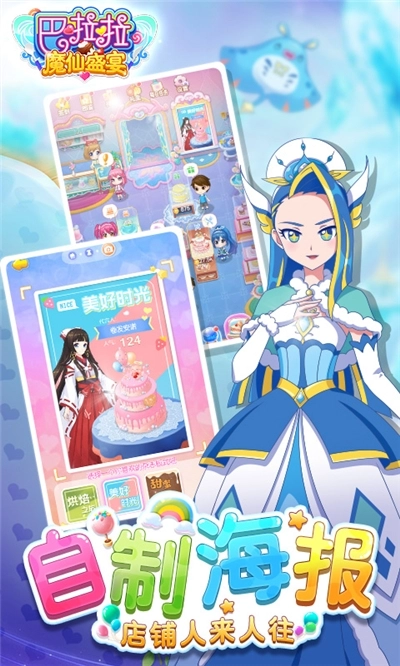 巴啦啦魔仙盛宴是一款以巴啦啦小魔仙为题材的Q版卡通模拟经营游戏,画面高清精致,玩法简单灵活。在游戏中,玩家将经营一家蛋糕店,通过拍摄海报、制作精美蛋糕来吸引顾客,获取收益并逐步扩大经营规模。