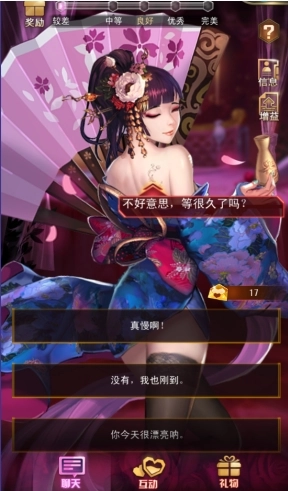 和女神聊天时,得好好开动脑筋,根据她的类型来回答她的问题,评论得分越高,能增加的好感度就越多哦。另外,和女神聊天是需要消耗亲密卡的,要是亲密卡用完了,记得去商城补充呀!