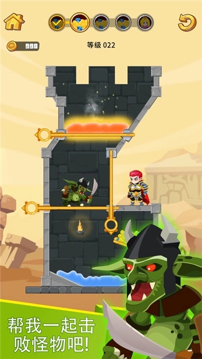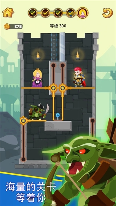 英雄救援是一款十分有趣的休闲益智闯关游戏,游戏里设有丰富多样的关卡,玩家的目标是解救被困的公主,并且需要战胜所有怪物才能成功通关,感兴趣的朋友快来开启英雄救援的游戏之旅吧!