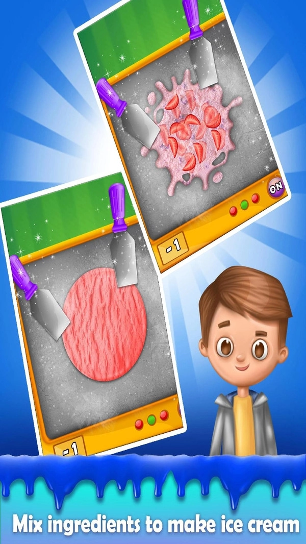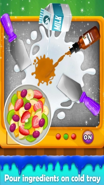 我们要聊的是炒冰淇淋,它还有个名字叫滚冰淇淋。这是一种甜味的冷冻甜品,主要原料是牛奶、奶油和糖,有时还会加入其他成分来丰富风味。制作时,先把液体混合物倒在冰盘上,同时将温度冷却到-15至-20摄氏度,接着用抹刀在冷却盘上搅拌配料。在针对女孩设计的冰淇淋制作游戏里,会添加其他必要成分,然后不断切碎、翻拌混合物,直到它呈现出奶油般的质地。之后把混合物在面包店的平底锅里摊成薄薄一层,再从一侧用抹刀将冰淇淋卷成圆柱状。最后把卷好的冰淇淋放进甜筒或杯子里,用喜欢的配料进行装饰。