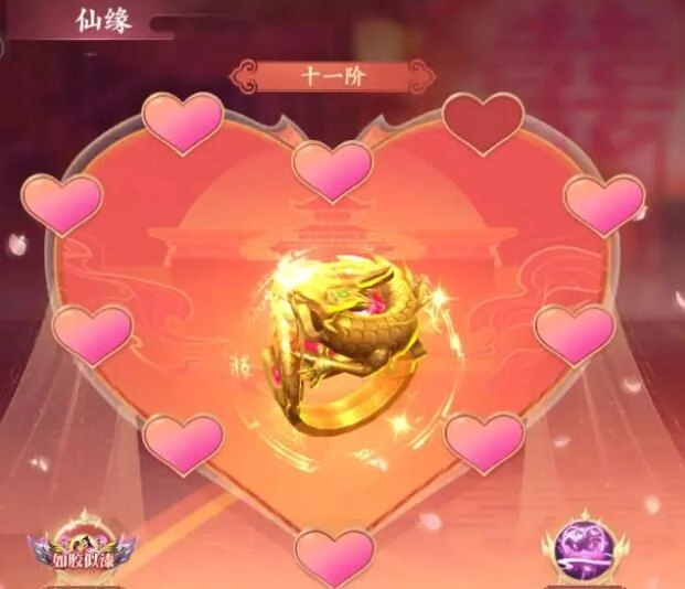 激活戒指后,即可获得相应属性加成,戒指的阶段与等级越高,所增加的属性就越丰厚。夫妻双方互相赠送礼物能够提升爱情值,随着两人爱情值的不断增加,戒指等级也会随之提升,当等级达到特定要求时,还能进一步提升戒指阶段。而戒指阶段的提升,不仅能解锁对应的专属称号,还能增强戒指技能的效果。