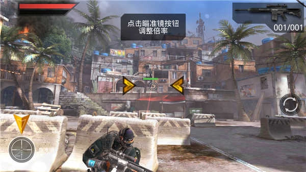 面对高威胁狙击手,点击右下角缩放图标启用光学瞄具,调节合适倍率以提升远距识别精度。