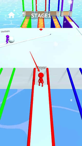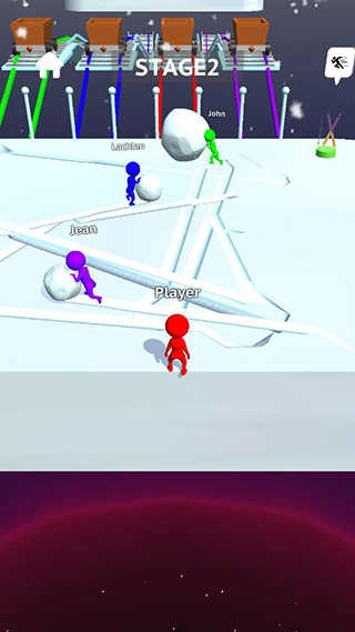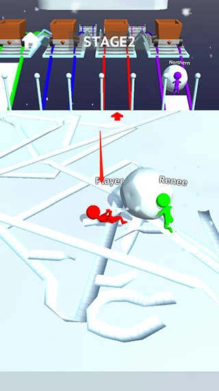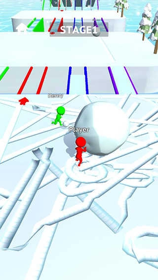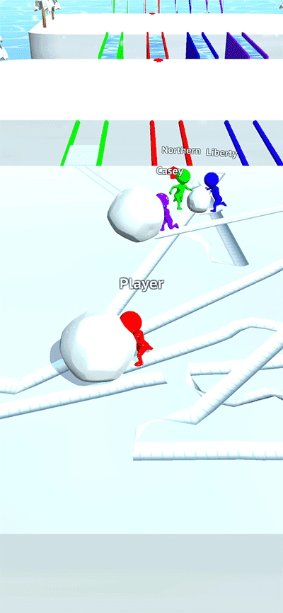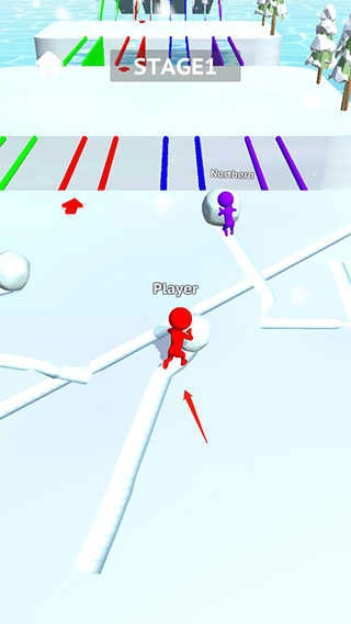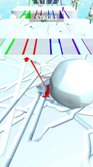 5、当雪球积累到一定大小后,找到和你颜色一致的路径,借助雪球铺成的路来通过桥梁;