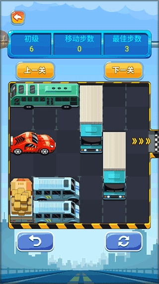 2、针对刚开始接触的玩家,建议先从简单模式入手,这样能更好地熟悉游戏规则。具体操作是滑动屏幕上的车辆,从而为出口空出位置。