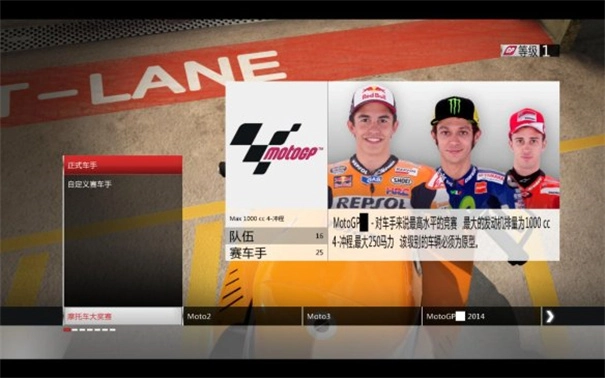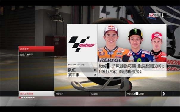 (2) 大奖赛:从摩托车大奖赛里挑选一场赛事来进行游戏体验。