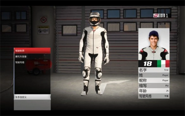 (1)车手自定义:可对车手的驾驶执照(即个人信息)、全身装备以及驾驶摩托车过弯的习惯进行调整。