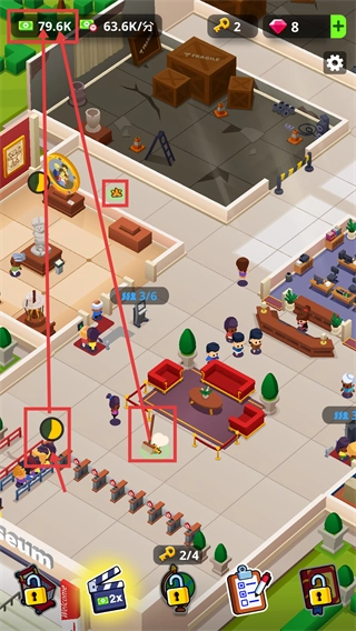 4、完成特定经营目标可解锁具有影响力的特殊游客,每次解锁都能获得专属奖励,为场馆发展注入额外动力。
