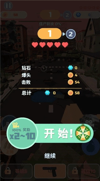 3、击杀僵尸可获得奖励,若以爆头方式击杀还能得到额外奖励,游戏内也会随机掉落钻石。