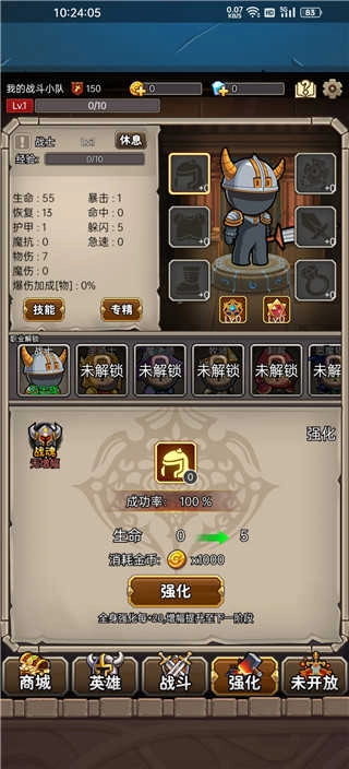 6、游戏内设有金币与钻石两种货币,钻石仅能通过观看视频获取。前期商城中的物品无需购买,建议尽可能积攒钻石,后期会有重要用途;金币则全部用于强化装备,没有其他使用途径。