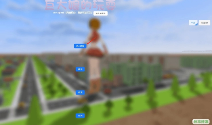 1、启动巨大娘的玩耍游戏,等待场景加载完毕,进入首页后点击开始游戏。