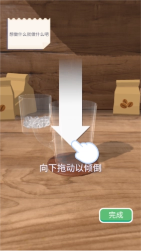 3、向下拖动用以倾倒原材料将原料倒入杯中