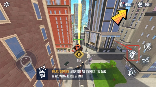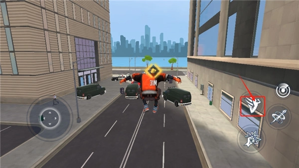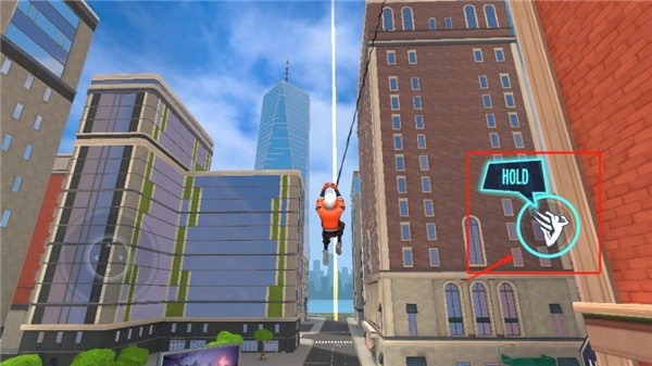 3、同样是这个按钮,我们长按就可以发射蛛丝,在城市中游荡,一般用来赶路。