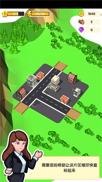 6、城市升级到更高星级还需要用到建筑材料,点击地图上的绿色树木就能进行砍伐,当砍伐达到一定数量时,树木会被清理掉,与此同时还能获取建筑材料。后续进行道路建设时,也需要通过类似的操作来清除障碍物。