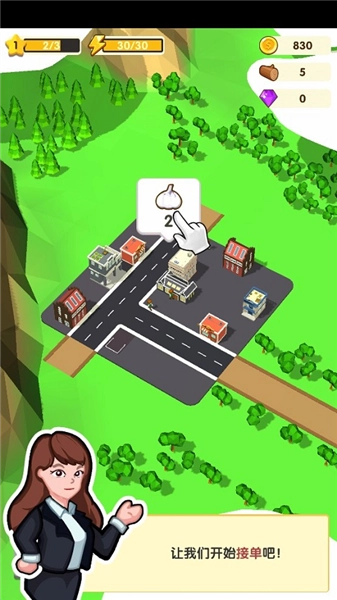 4、道路修缮完成后,就可以开始接收订单了!如图所示,在城市区域内点击“气泡”图标就能选中订单,当你选中订单后,系统会自动匹配城市内的可用车辆来完成运输任务。