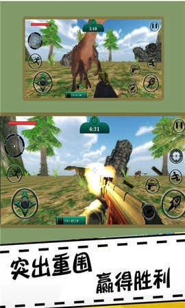 1、游戏里提供了种类丰富的武器供玩家挑选,当遭遇恐龙袭击时,你可以尽情地展开射击。