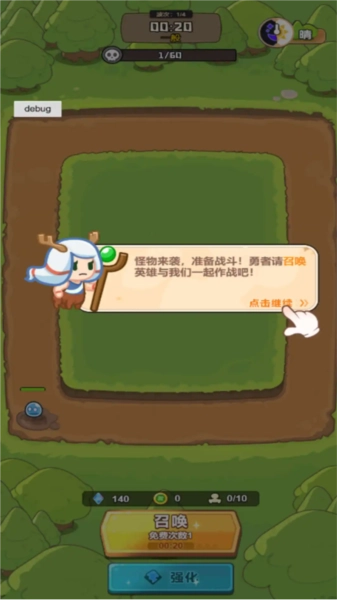 1.召唤英雄上战场备战,与不断袭来的怪物群进行正面对战,一较高下。