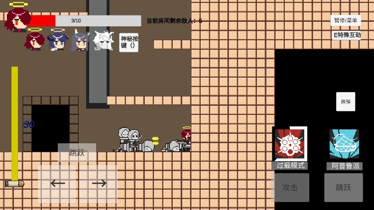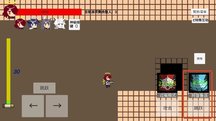 1、游戏左下方为角色移动控制区域,基础操作包含方向键与跳跃功能,不同角色各自具备2个独特的特殊技能。
