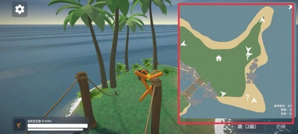6、借助跳跃动作快速抵达另一座小岛,收集新的图案或身体部件,你也能点击右上角的地图来确认自身位置,接下来就继续寻找新的肢体去创造生物吧。