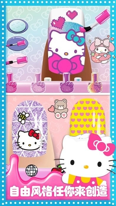 2、凯蒂猫联名限定款装饰元素,为美甲设计增添梦幻可爱的风格选择。