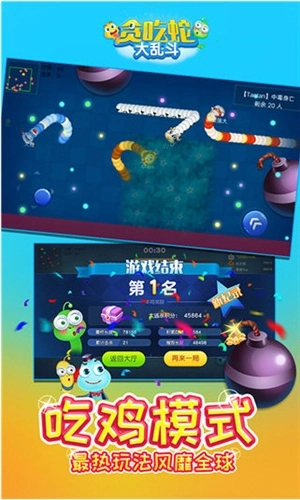 当下热门的“吃鸡”玩法,搭配以配合为核心的团战模式,既新鲜有趣又紧张刺激,开启了休闲贪吃蛇的全新篇章。