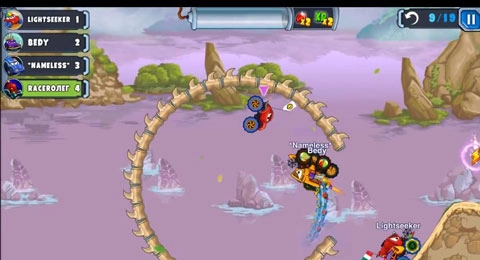 2、收集涡轮增压器以提升赛车性能,借助跳跃与循环动作实现对对手的超越。