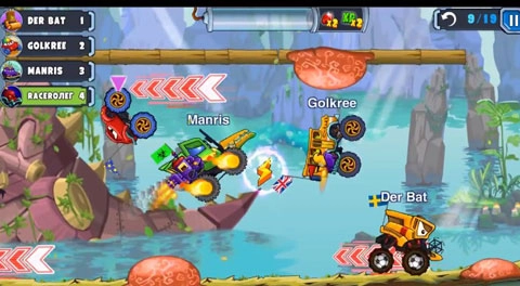 2、游戏里设置了多种道具,玩家在比赛进行时能够拾取它们,从而获取竞争上的优势。