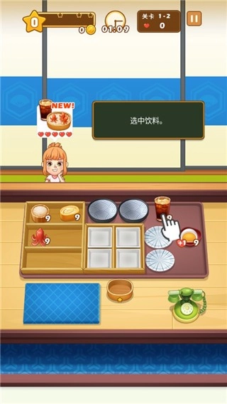 3、玩家需要依据顾客的需求制作便当,要确认清楚需要使用哪些材料。
